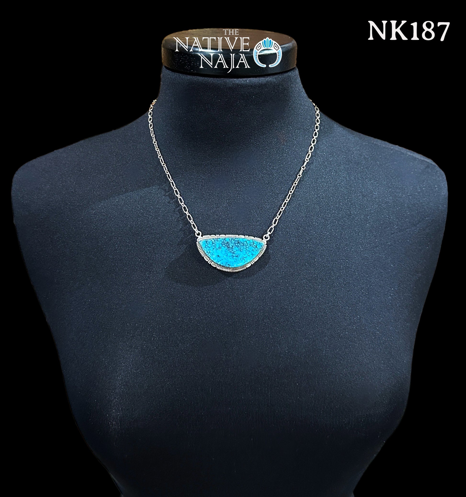 Navajo Steve Francisco Spiderweb Kingman Turquoise & Sterling Silver Necklace NK187