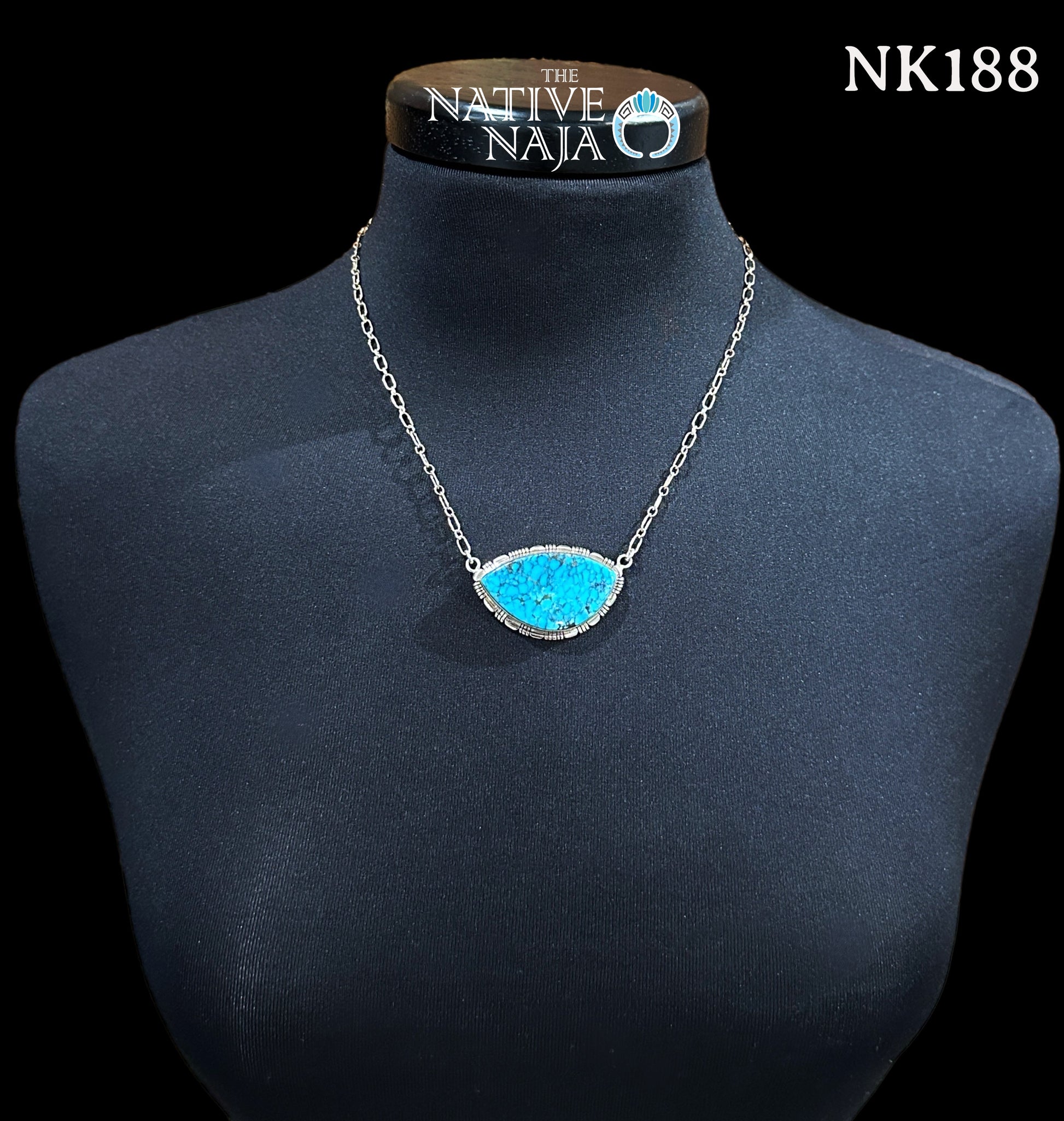 Navajo Steve Francisco Spiderweb Kingman Turquoise & Sterling Silver Necklace NK188