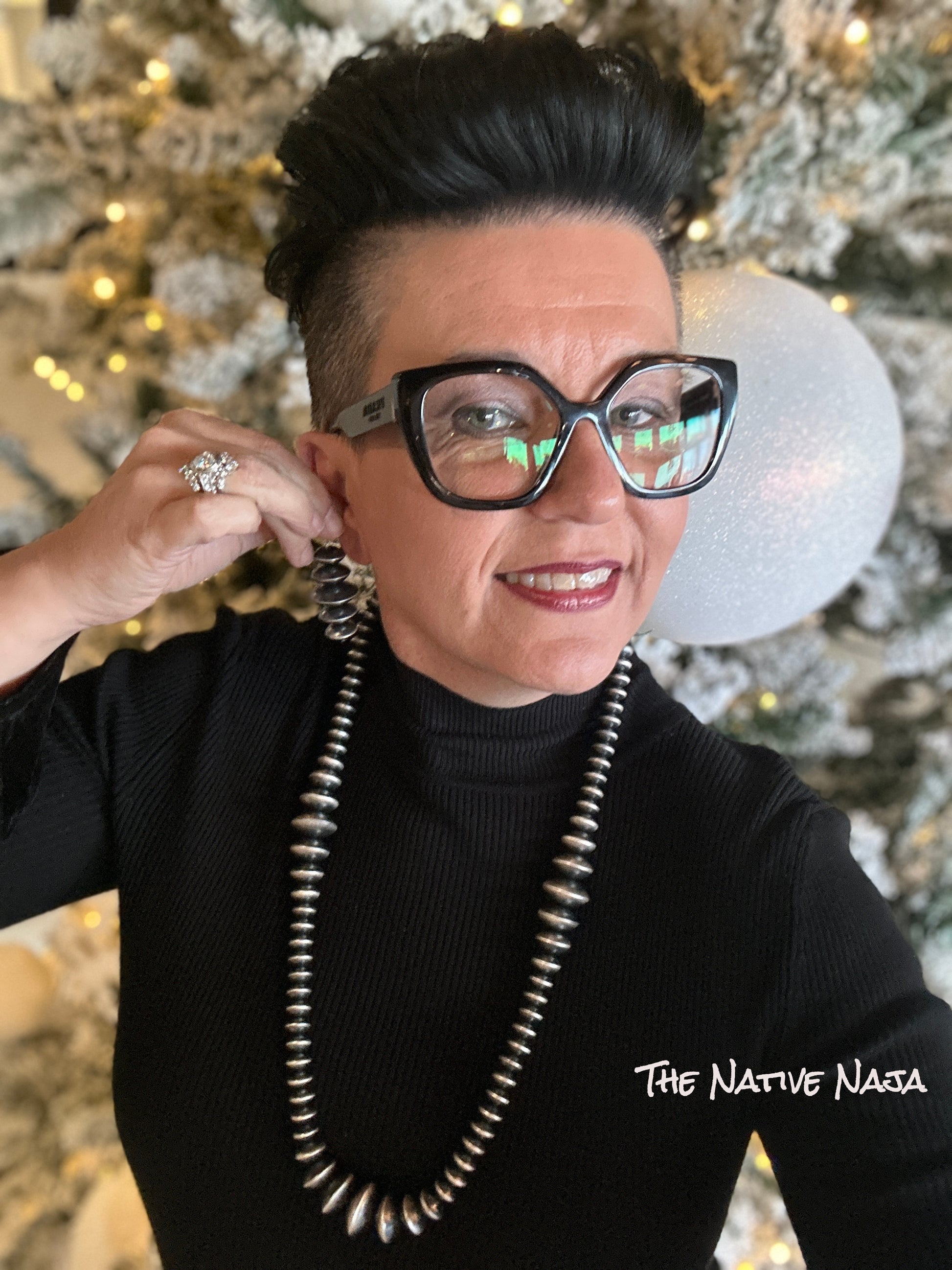 Navajo Tonisha Haley Handmade Sterling Silver Saucer Navajo Pearl Necklace NK108