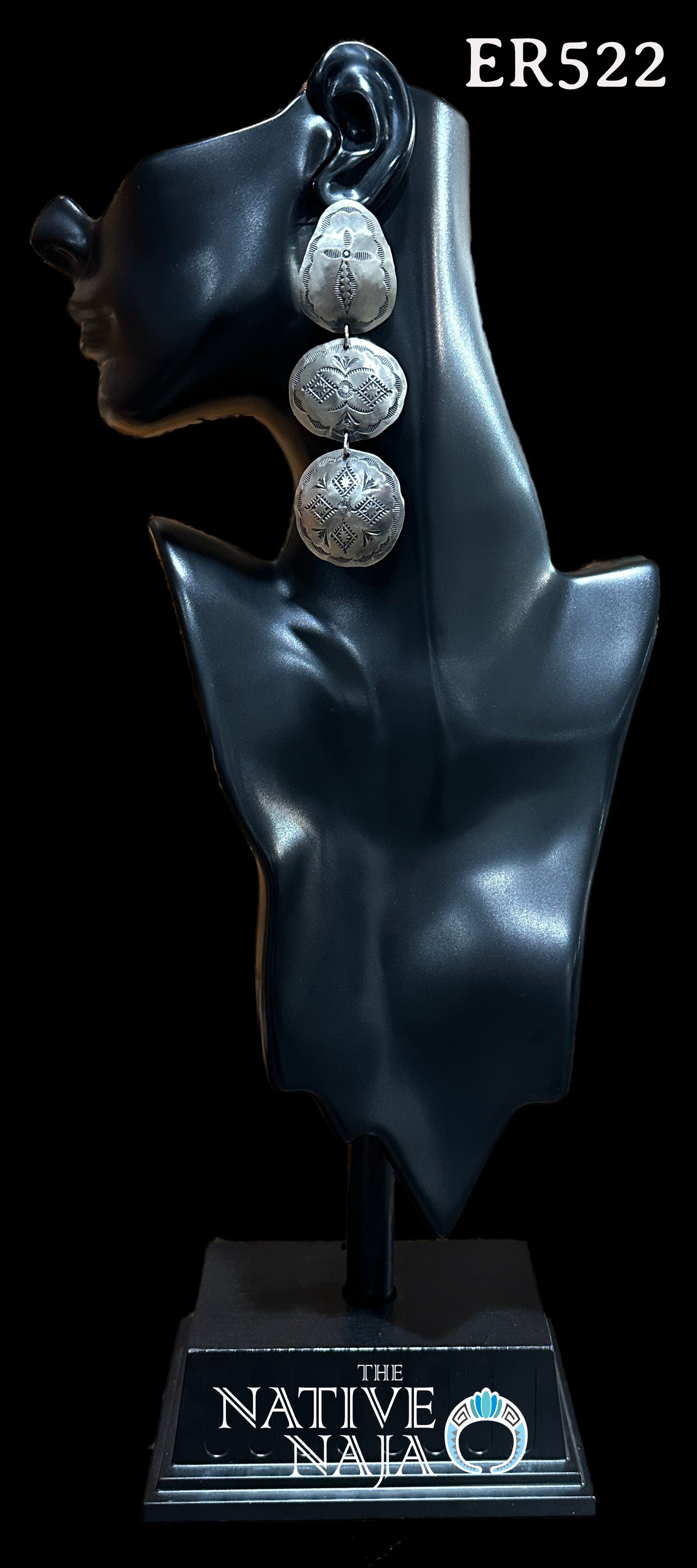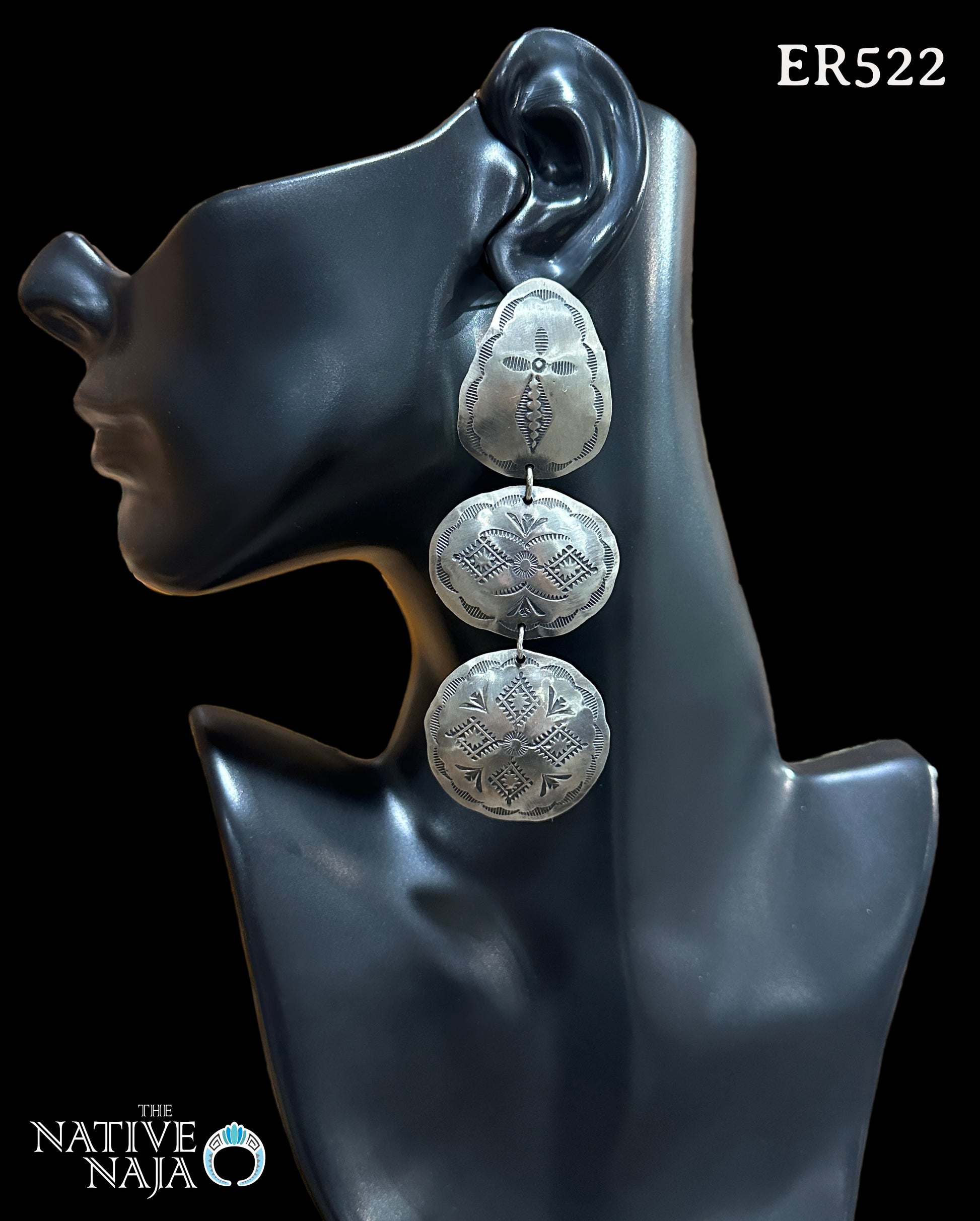 Rare Large Statement Navajo Rita Lee Hand Stamped 3 Tiered Concho Cross Post Earrings ER522
