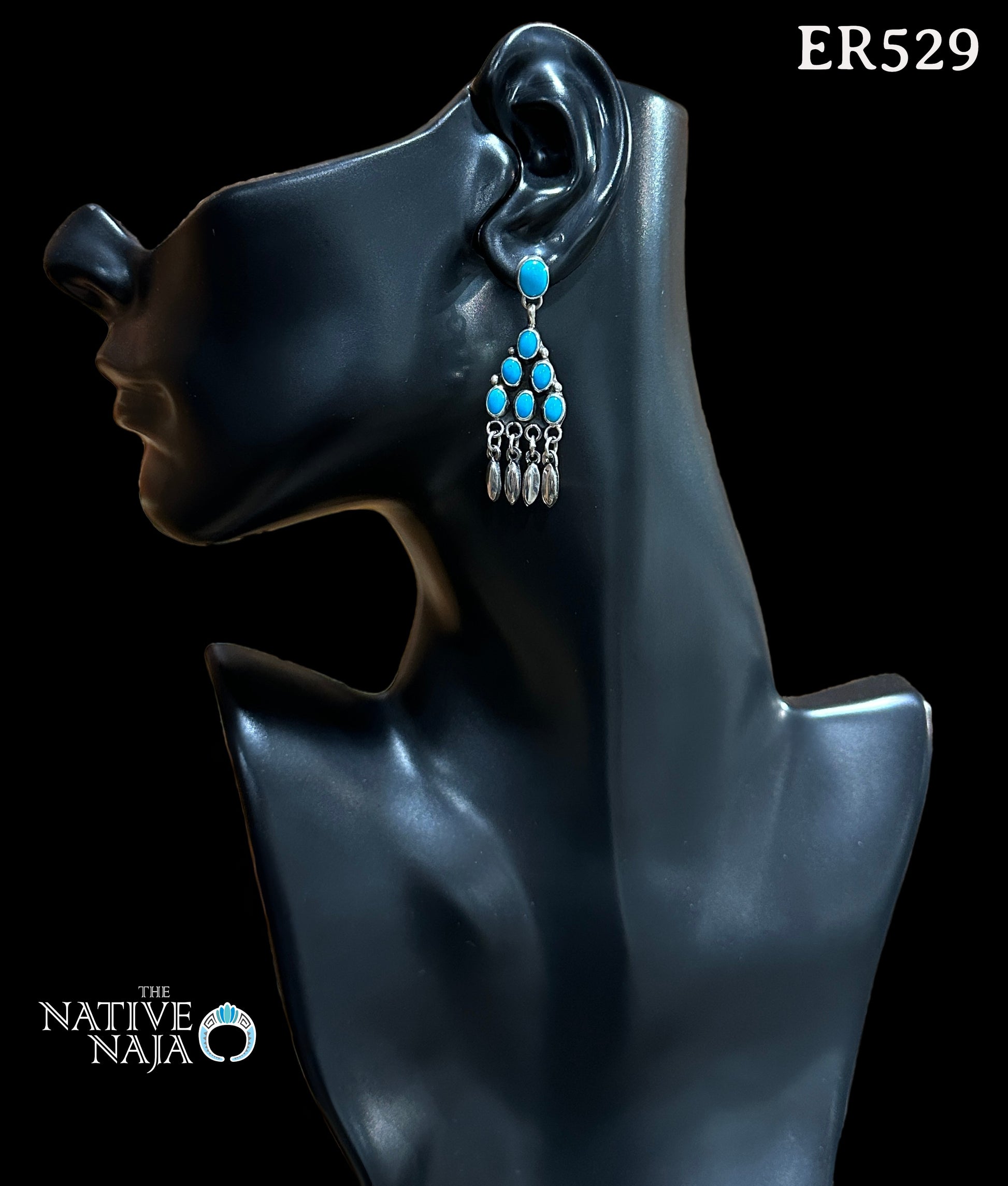 Stunning Navajo Geneva Apachito Sleeping Beauty & Sterling Silver Chandelier Post Earrings ER529